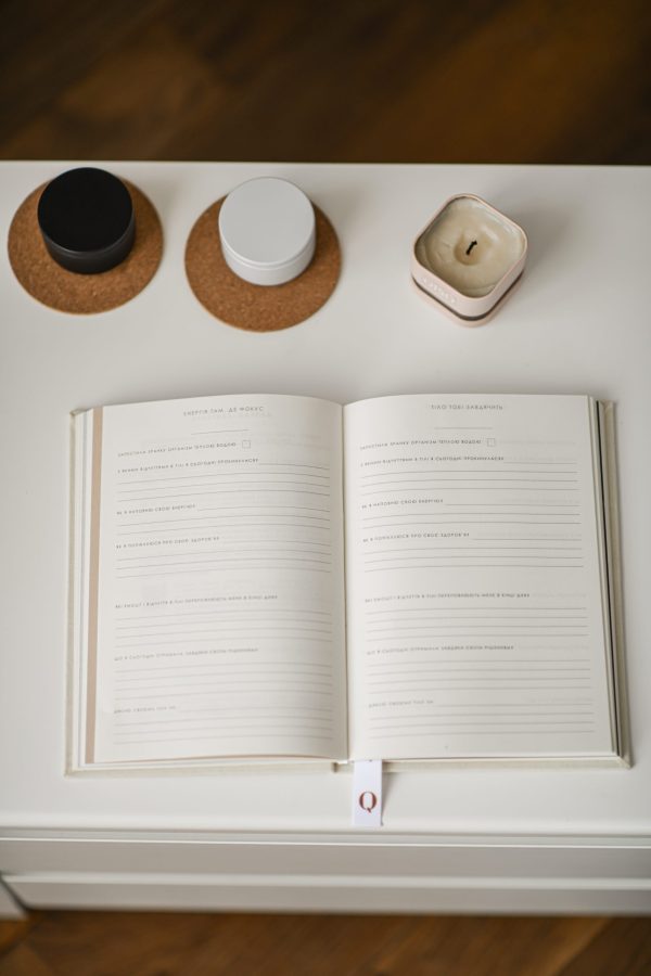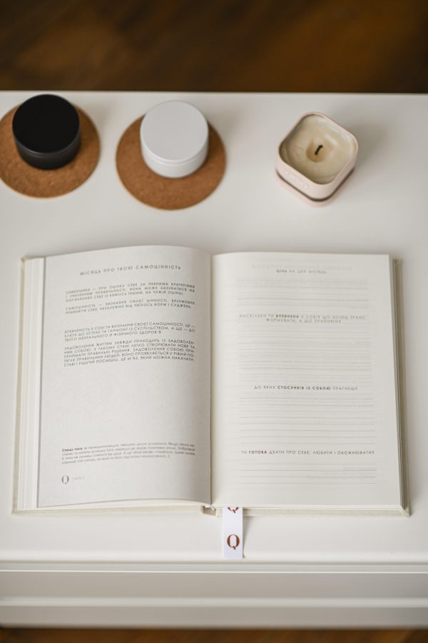 Подарунок з найестетичнішим блокнотом буде справжнім проявом небайдужості. Всередині продукти із серії Self-care: тематичний блокнот на три місяці про догляд за собою, самоцінність і здорове тіло. Також трекери на цілий рік для створення корисних звичок у житті, стікери та ароматична свічка ручної роботи.